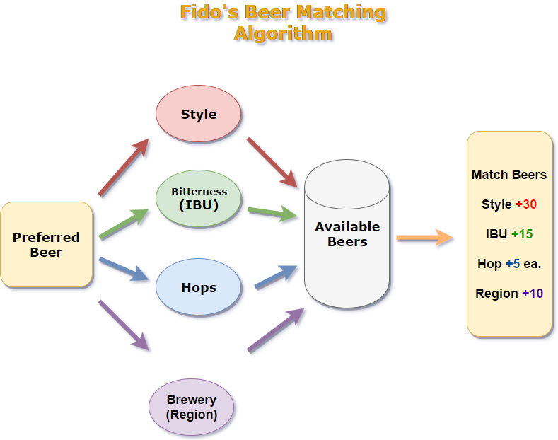 As microbreweries grow in popularity the average consumer finds them-self faced with a greater number of obscure beer choices at their local pub. Fido allows a user to choose a beer he or she knows they would enjoy and see matches based on specific attributes of that beer.